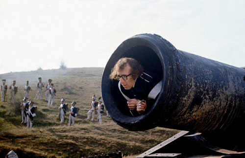 « Guerre et amour » est totalement dans la veine des premiers films de Woody Allen : burlesque où les gags et les jeux de mots s’enchaînent. A noter un dialogue excellent au cachot où Boris et son père se parlent uniquement en employant des titres de Dostoïevski !